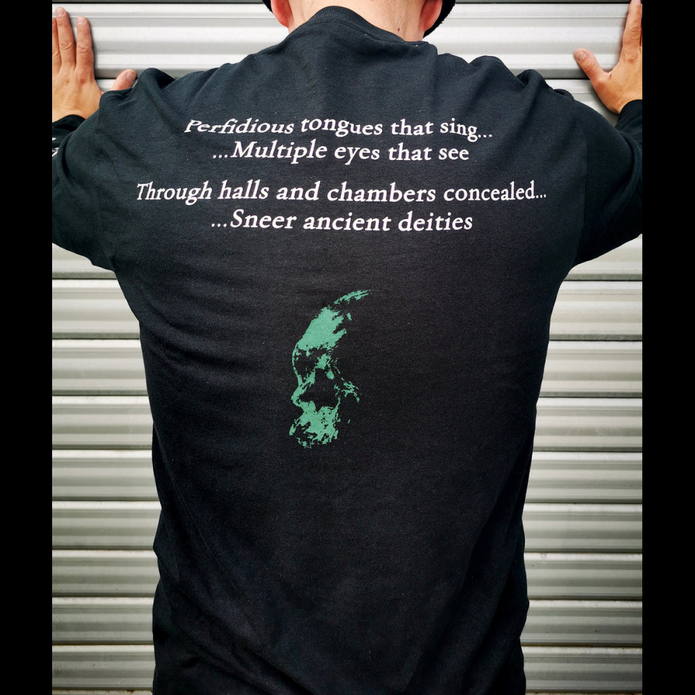 Long sleeves tee shirt with 4 colours discharge print on front, 2 discharge colours print on back and 1 color discharge print on each sleeve.